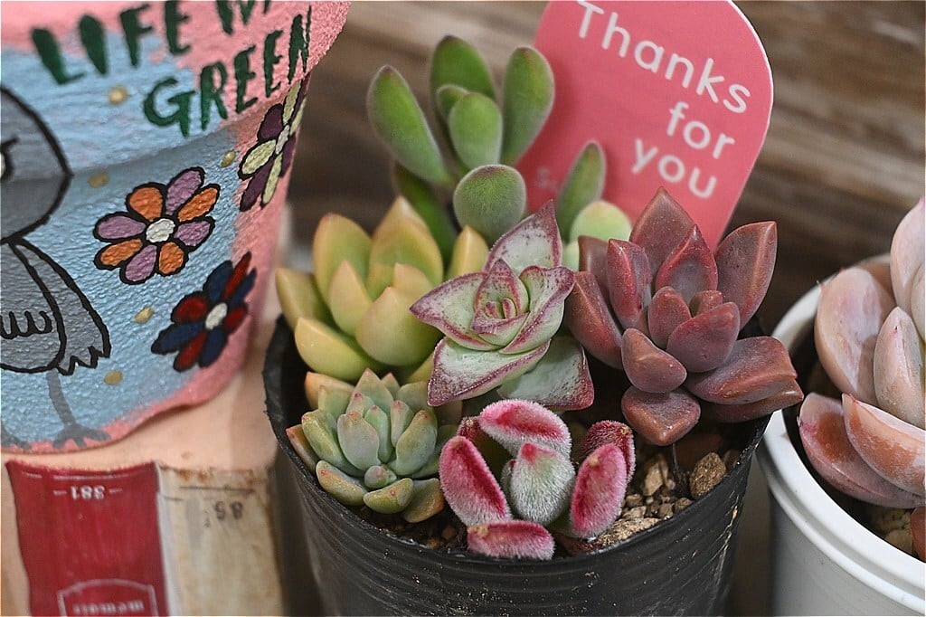 人気のリメ鉢作家さんの作品と多肉植物のお買い得なセット販売です。