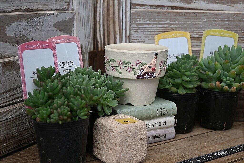 有名作家さんのリメ鉢と多肉植物のセット販売です。